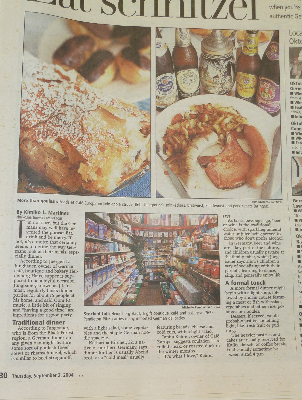 Tuesday thru Friday 8:30am to 7:00pm Saturday 8:30am to 5:00pm Sunday 11:00am to 5:00pm Kitchen closes 30 minutes prior to store closing. The Heidelberg Haus Cafe, Bakery and Giftshop will be