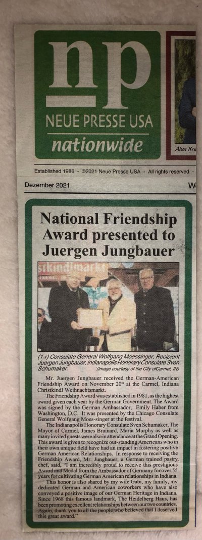 289 December 2021 Neue Presse - National Friendship Award Presented to Juergen Jungbauer